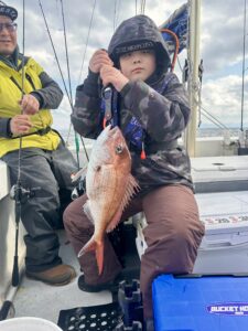 朝イチ、魚探掛けながら走っていると、アミ反応の強目のポイント発見!流し始めると直ぐにマダイからの答えが返ってきました🙆♂️1流し目で10枚は行ったと思います。