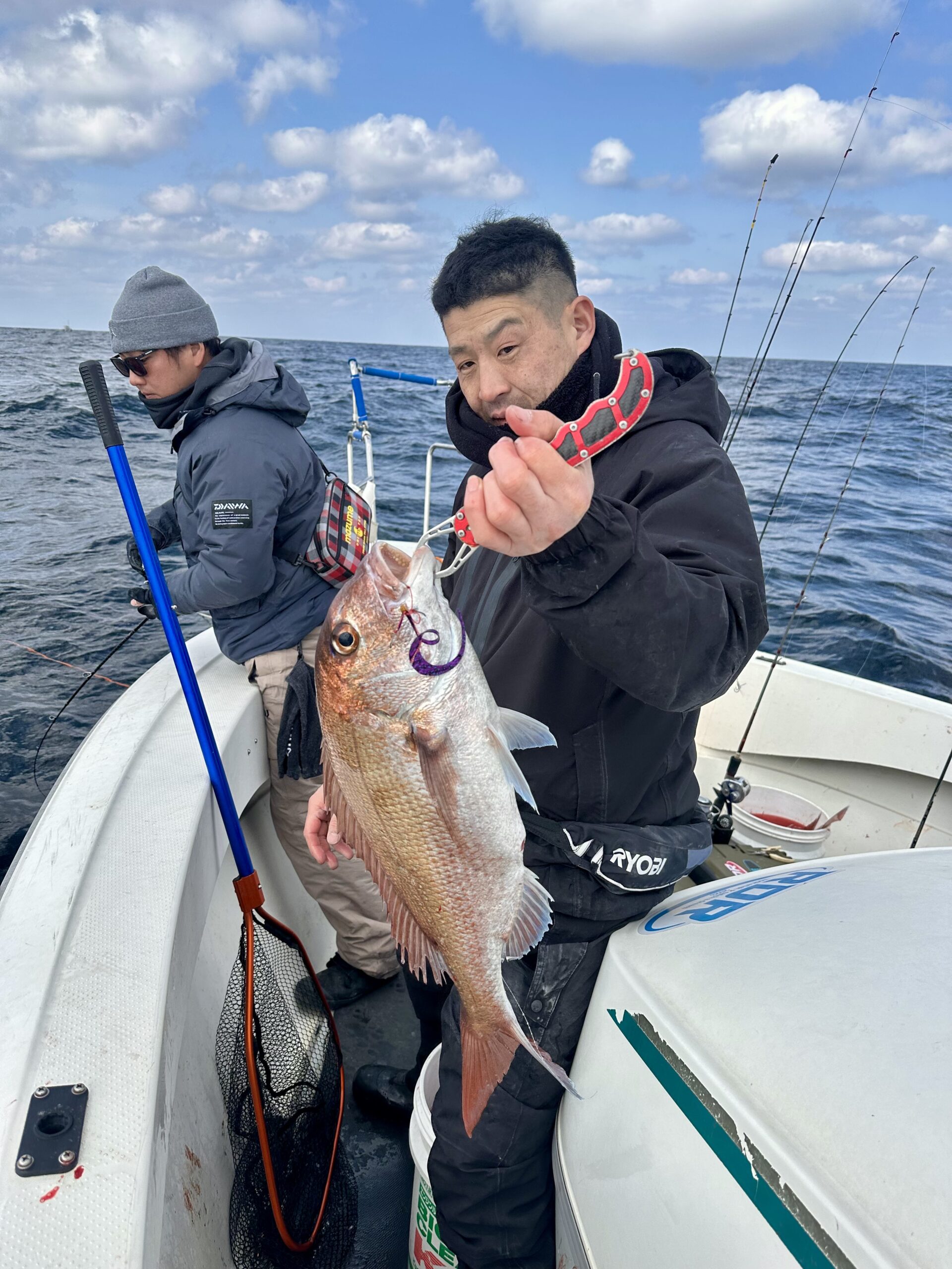 朝イチ、魚探掛けながら走っていると、アミ反応の強目のポイント発見!流し始めると直ぐにマダイからの答えが返ってきました🙆♂️1流し目で10枚は行ったと思います。